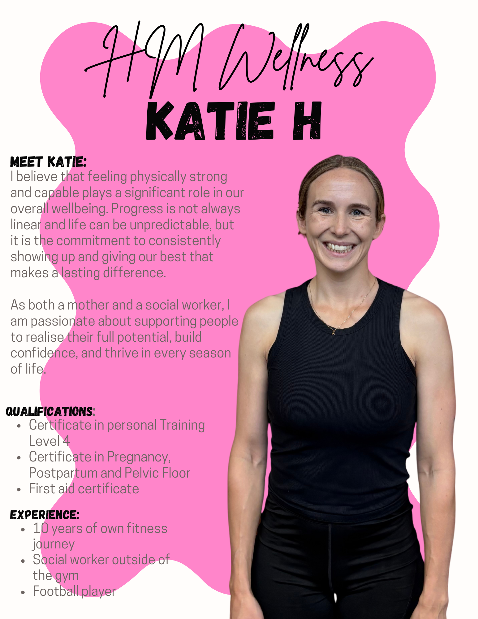 Katie believes that physical strength fuels overall wellbeing. A Level 4 certified trainer with expertise in pregnancy, postpartum, and pelvic floor health, she helps clients build confidence, consistency, and resilience. As a mother, social worker, and lifelong athlete, Katie supports people to reach their full potential - in the gym and in life.